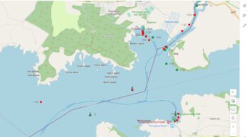 - At 18.15hrs the lifeboat was alongside the casualty vessel which was listing to port and on rocks. There were two persons on board (the skipper has been joined by a friend, a marine mechanic). The lifeboat transferred an RNLI crew member and the salvage pump to the casualty vessel and the lifeboat salvage pump was immediately put to work. The cruiser Aftermath met Fergal Kerney and took him to the scene.